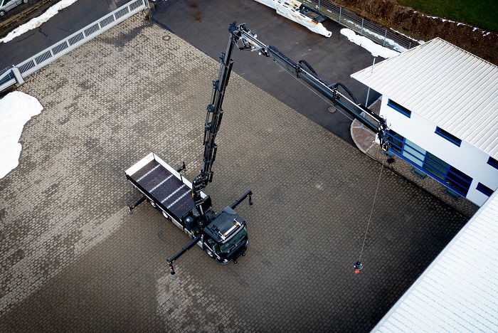 Volvo FM62TR mit PK 26002 EH hinter dem Führerhaus. Spezielle Leichtbauweise sorgt für ein Gesamtgewicht von 13500kg.