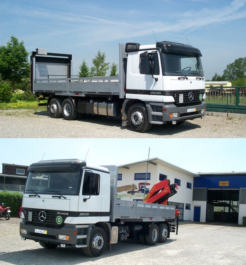 Wechselbrückenaufbau mit BDF System. Zwei Brücken - ein LKW. Eine Brücke mit Palfinger Ladekran, eine Brücke mit Ladebordwand.
