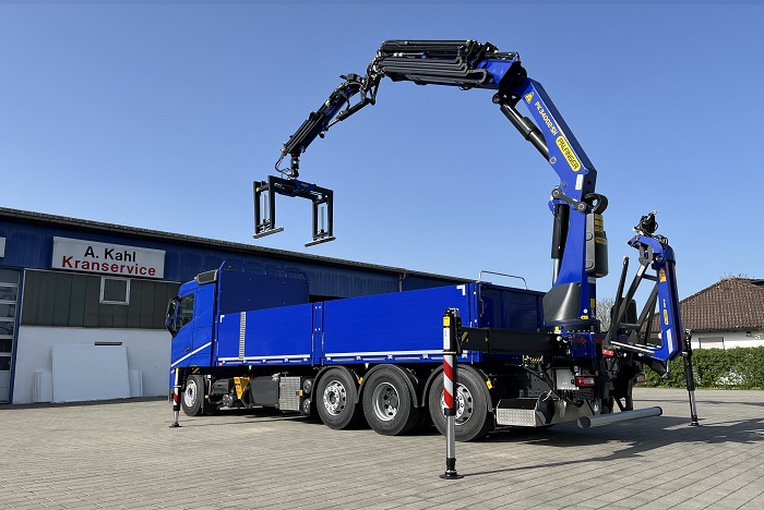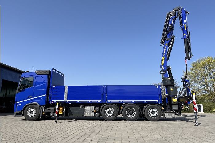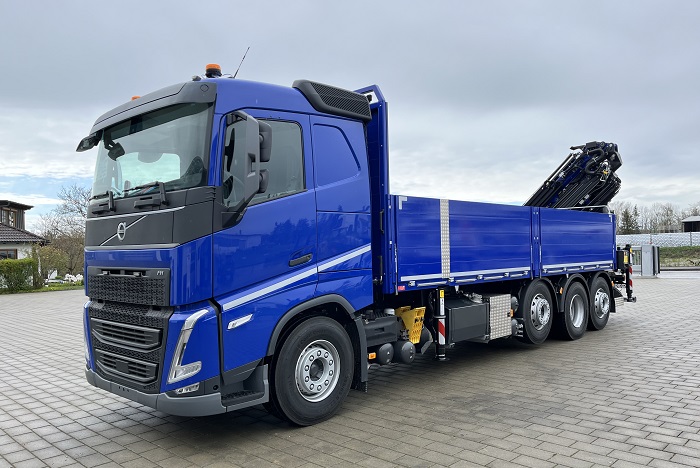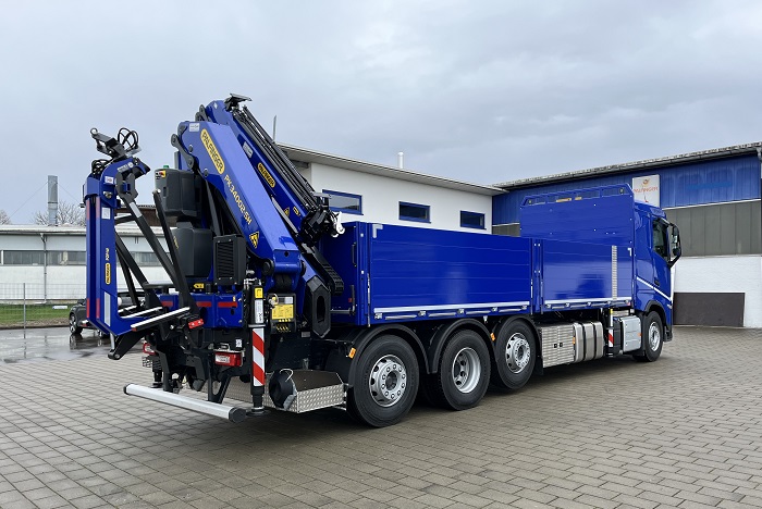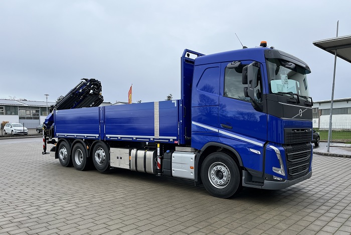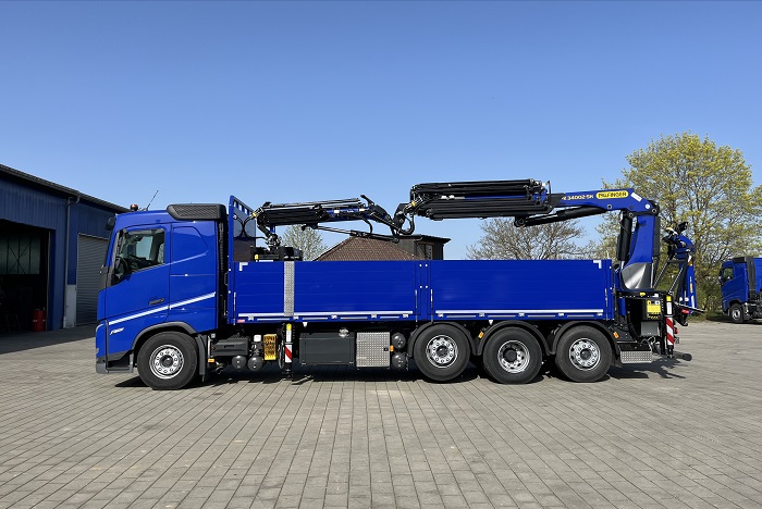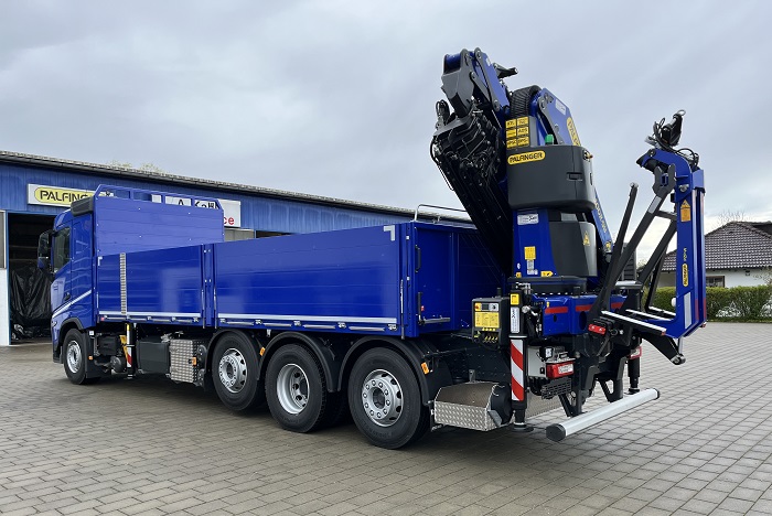 Volvo FH 8x2 Tridem mit Palfinger PK 34002 SH und PJ060B. Extra große Ladebrücke mit 7m Innenlänge. Abnehmbare Wendegabelhalterung und offene Wanne für sperrige Gegenstände am Heck.