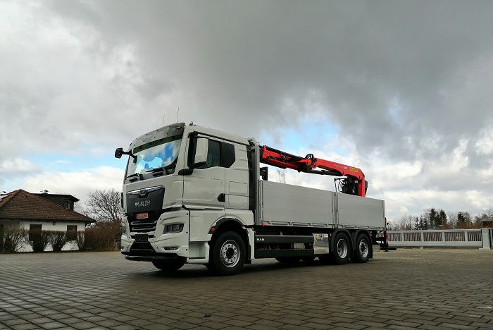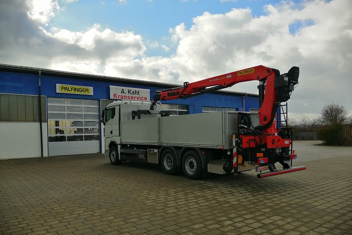 MAN TGX 26.470 6x2-2 LL mit PK 18002 EH und Krangabel mit hydraulischem Schwerpunktausgleich.