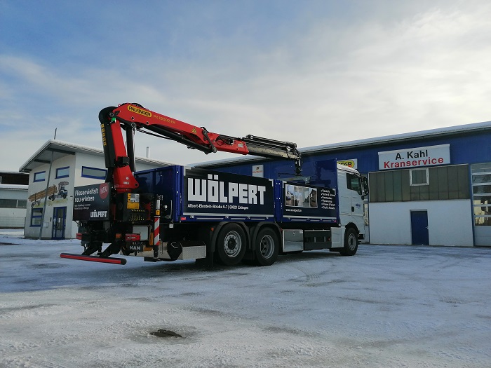MAN TGX 6x2 mit Palfinger Langarmkran PK 18.001L SLD3 und Steinstapelzange. Ladebrücke mit Bordwandhebehilfe und Aufstiegstritten in jedem Laden.