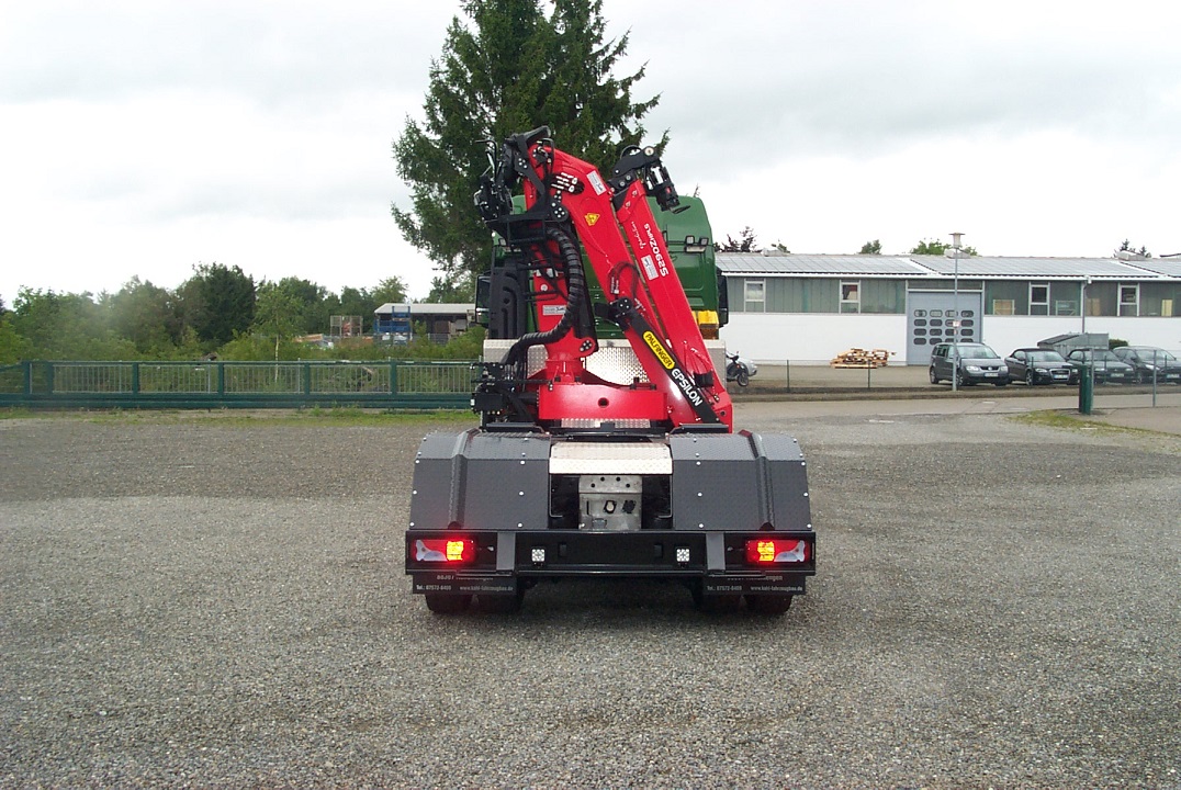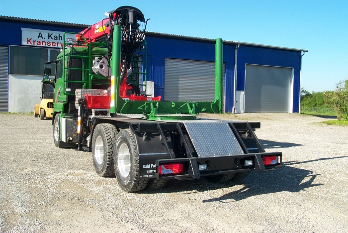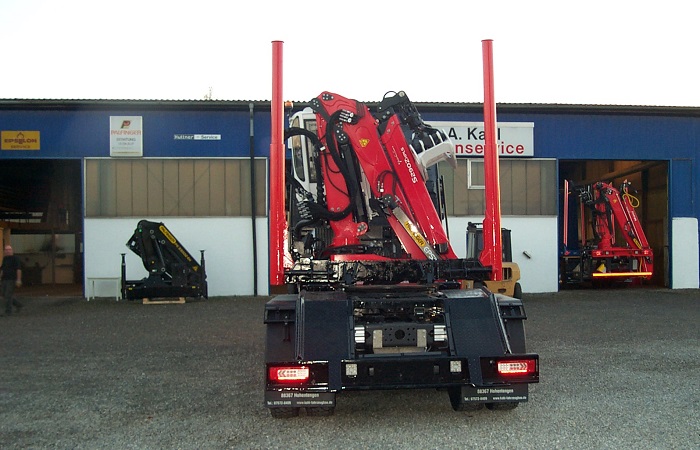 Langholzaufbau mit Huttner Schemel und Epsilon Kran S270L auf MAN 6x4